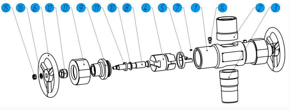 | 1 | Патрубок центральный | Сталь 20 | 9 | Втулка резьбовая | Сталь 40Х |
