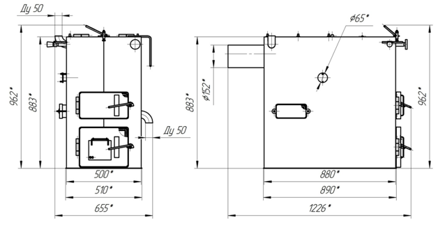Условный диаметр отвода подача / обратка – Ду 50
