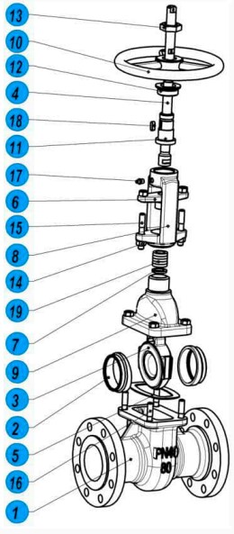 | 2 | Седло | Сталь 20 с наплавкой 20Х13 |